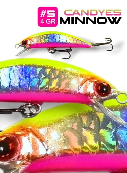Señuelo Tipo Minnow Atractor, con sus 5cm este señuelo es para pescar truchas medianas, Su modalidad floating permite recorrer todas las capas de agua y su alto contraste permite que las truchas lo vean muy fácilmente en condiciones de poca visibilidad.